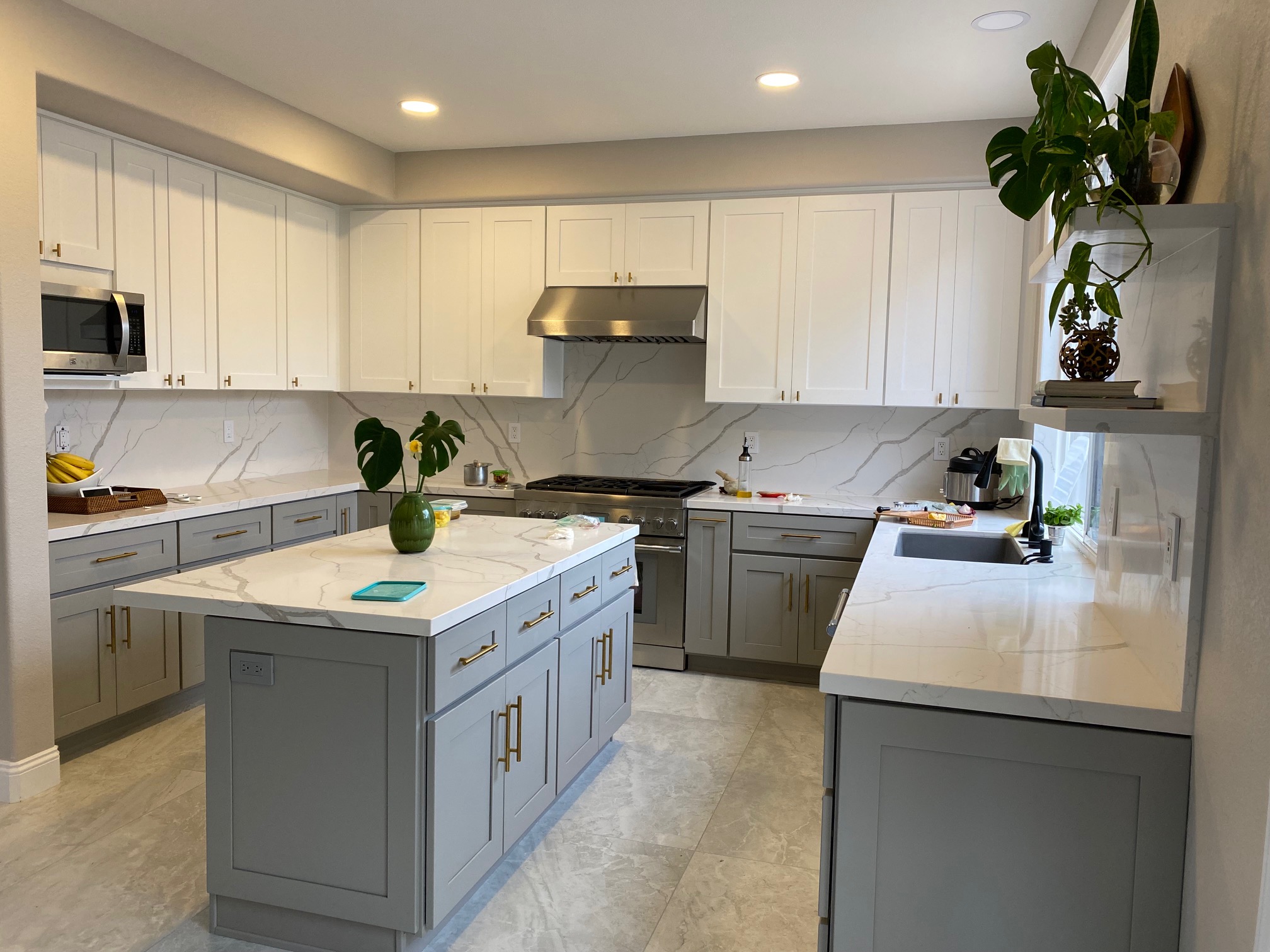 Kitchen & Bathroom, plus an entry way upgrade. The remodel included a full demo of the spaces, texturing, painting, new tile, cabinets and installation of appliances.